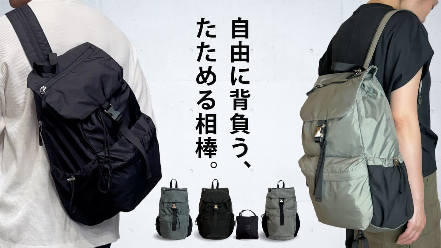 毎日お使いいただくため本体素材は耐久性が高くお手入れも簡単なナイロン素材を採用しました。生地の表面には軽いシワ加工が施されており、一般的なナイロンとは表情が違い、ひと洗いかけたような風合いをお楽しみいただけます。
