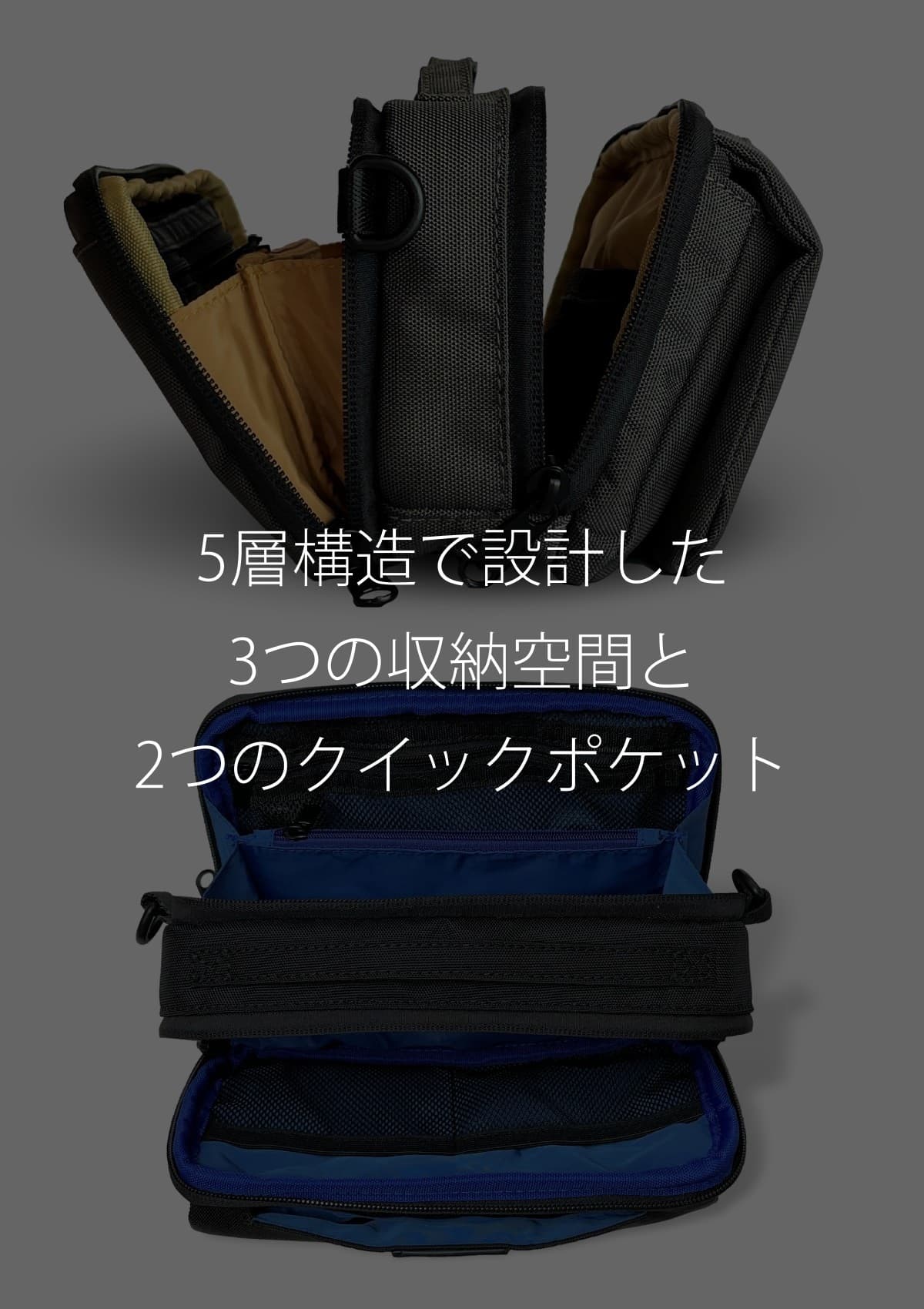 ウエストバッグとしても、ボディバッグやショルダーバッグとしても使える