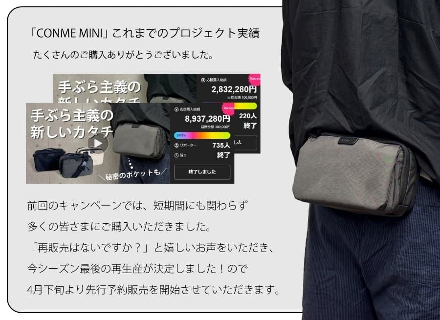 今回のバッグは、ご好評をいただいたショルダーバッグ「CONME」から