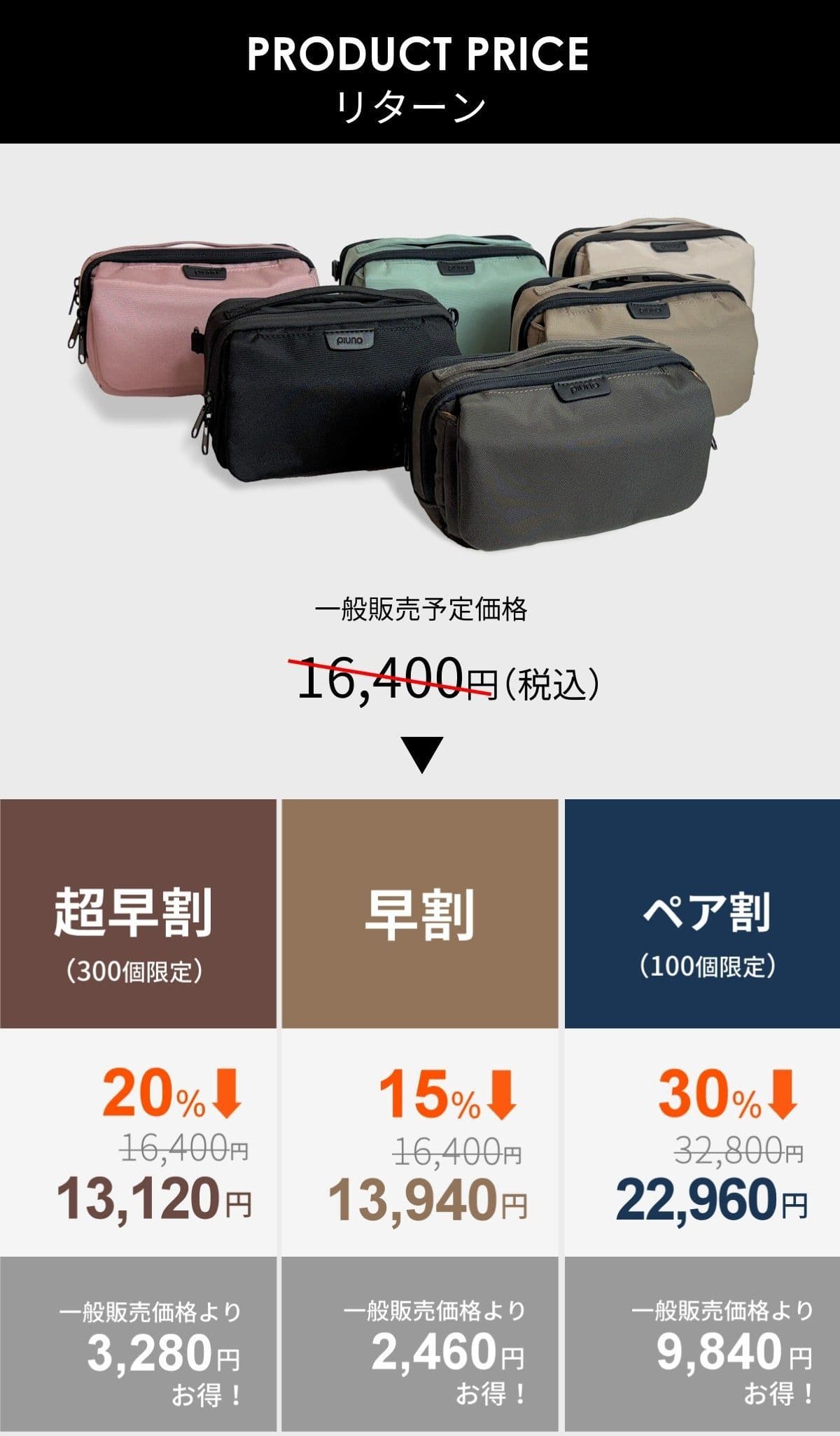 LINE事前登録で、上記価格よりさらに 15%OFF(11,152円)~ご購入いただけるCAMPFIRE発行クーポン付購入ページをご案内いたします。