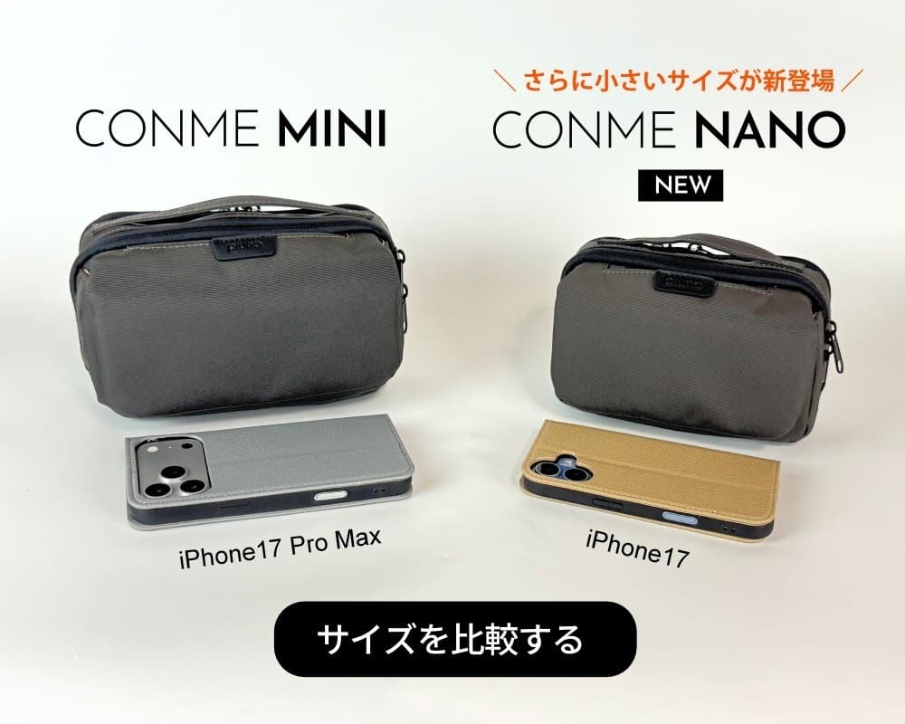 画像は、手帳型ケースを装着したiPhone17 ProMaxを収納してみました。