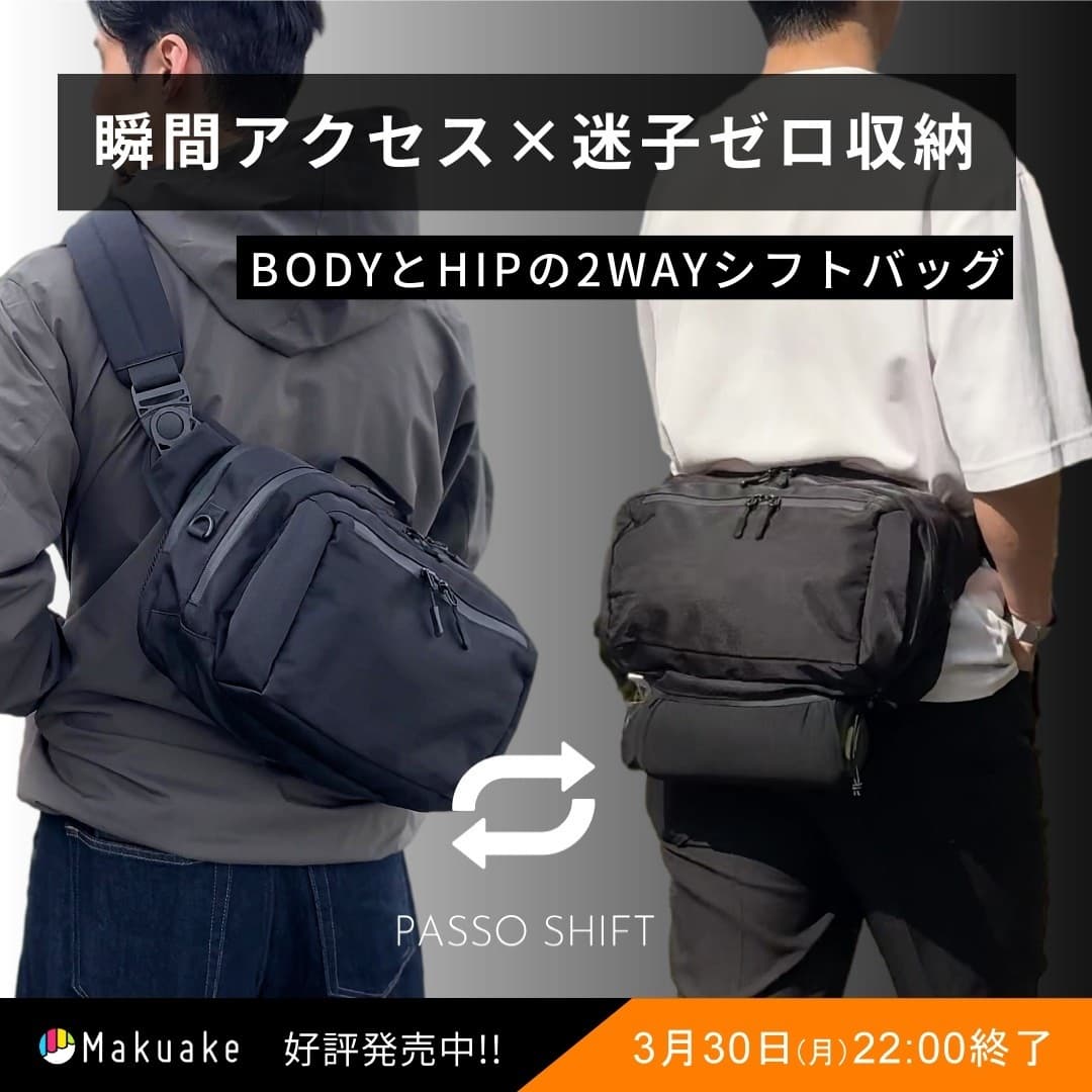 PASSO SHIFTは、CROSSBODY用とHIP用と、専用のベルトを使用することで、それぞれの機能性を最大限いかした2WAYモデルとして使用できます。