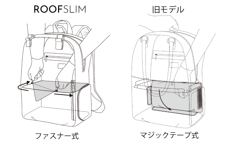 こちらのページでは、新製品「ROOF SLIM」と旧モデル「ROOF」を比較しながら、デザイン・仕様のアップデートされた点や新たに搭載された機能をご説明します。