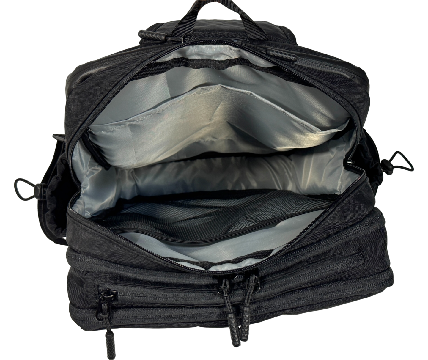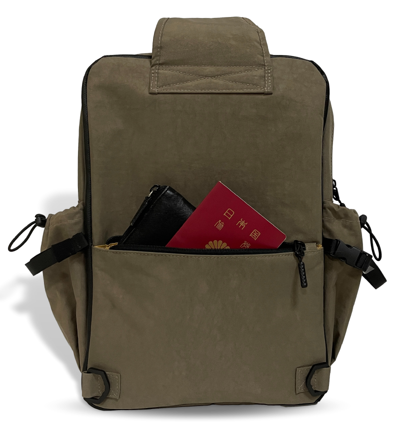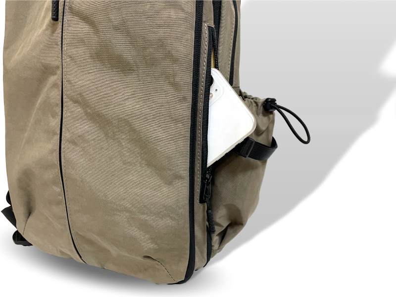 2層目には、バックの上部とバッグ両サイドにファスナーポケットを装備しました。