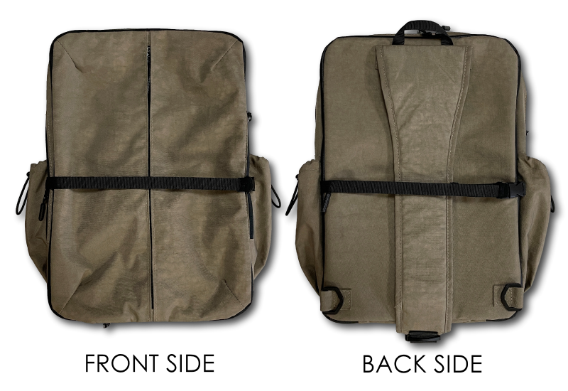 ストラップのバックルを外し、下記のようにバッグ前面と背面に接続することが出来ます。
