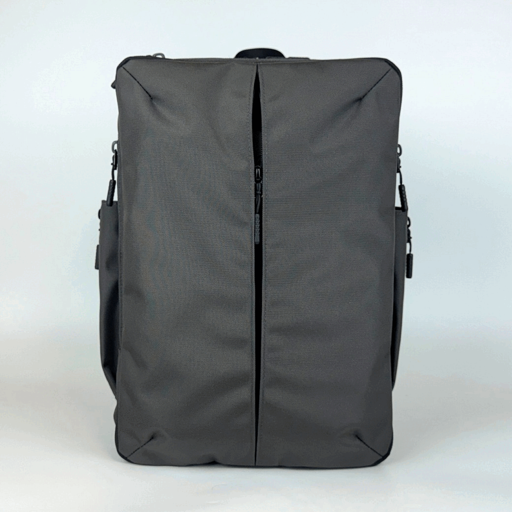 ボトルを入れる時だけファスナーを開けて使用する設計にしたことで、使っていない場合は、正面から見た際にポケットがない印象です。