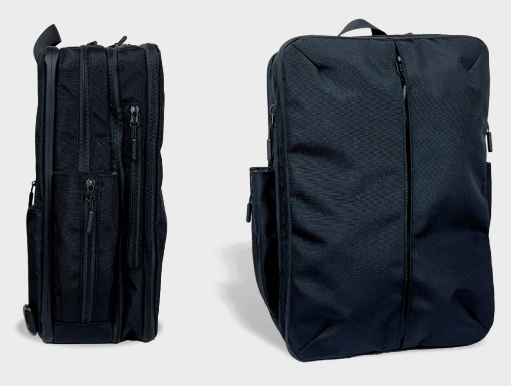ファスナーをグルっと一回りして拡張するこのスペースを使用すると、出張や外泊に必要な衣類や、ジムで使用する着替えなど、1泊分の衣類などを分別収納でき、別にカバンを持参する必要もありません。