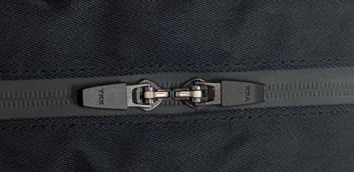 この底部のダブルファスナーのみスライダーがブラブラ垂れ下がらないようロック式のスライダーを採用しました。