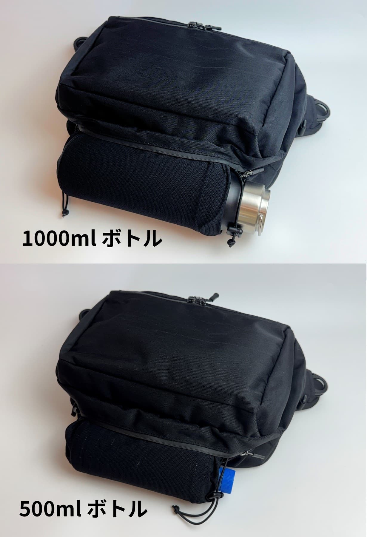 下記画像は、1000mlのボトルと、500mlのペットボトルを入れた状態です。