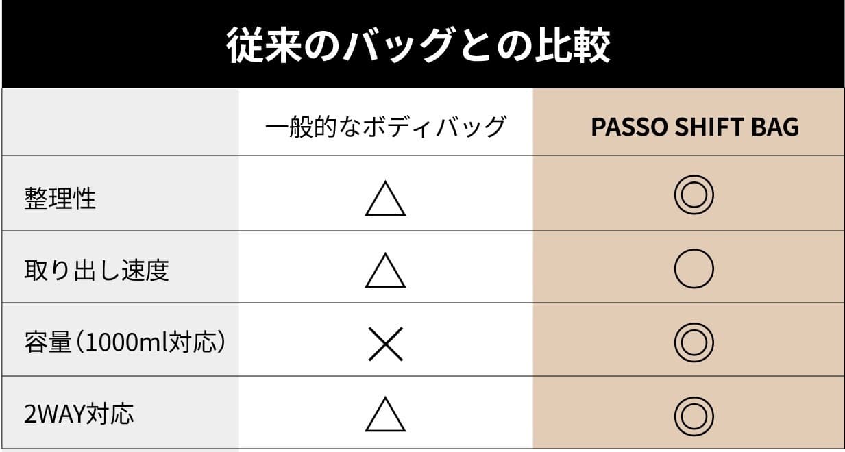 PASSO SHIFT BAGは、