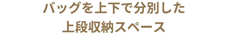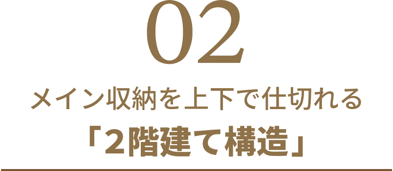 バッグのメイン収納スペースは、一般的なバッグのように大きな1部屋、そして下記画像のように上段と下段を仕切って2部屋にアレンジして使用できる2階建て構造です。