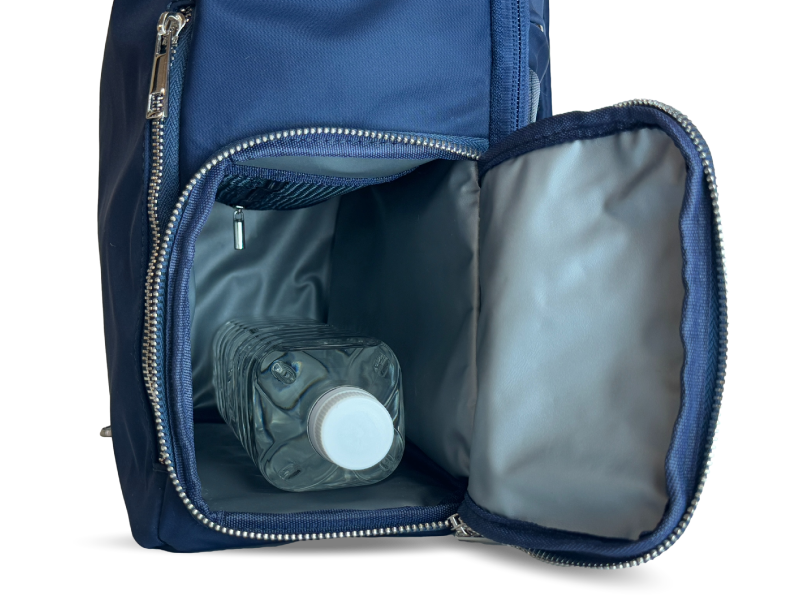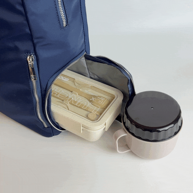 サーマルスペースは水分を弾くPVCと断熱素材を使用しており、日用品はもちろん、みなさんのライフスタイルに応じて、お弁当などの食品や、ドリンク、ジムで濡れた衣類や濡れた折りたたみ傘を汚れを気にせずスッキリと分別収納することが出来ます。