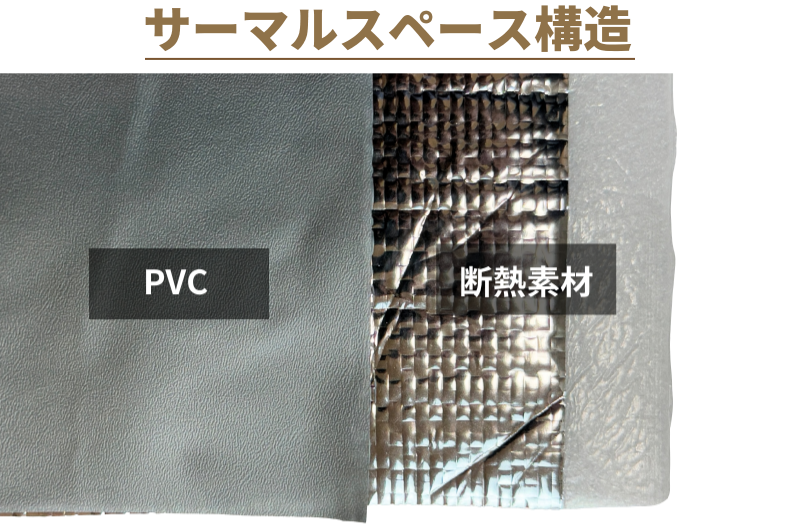 表面は撥水加工され、裏側は強度を持たす2層構造で構成されています。