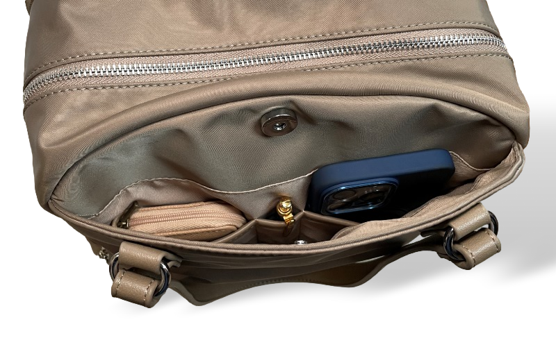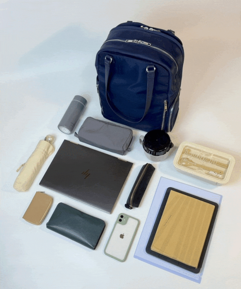この2階建て構造のおかげで、すぐに取り出したい物を分別したり、お弁当や濡れて物を分けて入れたい時に別のバッグを持たなくても簡単に分別することができ、バッグの中をスッキリ整理できます。