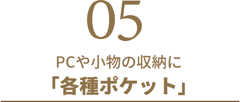 バッグ前面の両サイドにファスナーポケットを付けました。サッと取り出したいスマホや小物の収納に便利です。