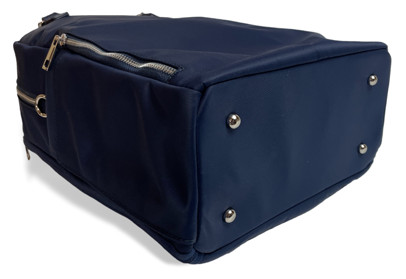 この素材は、ビジネスシーンでもカジュアルな表情が強くならないようにナイロンの中でも艶やかで高級感のある中肉素材を採用しました。