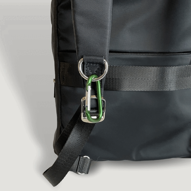 カラビナなストラップを付けるのに便利なDカンは、リュックのハーネル部分と、バッグサイドの2カ所に装備しました。