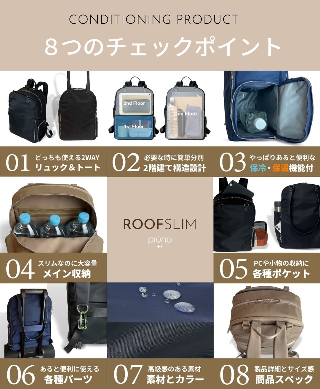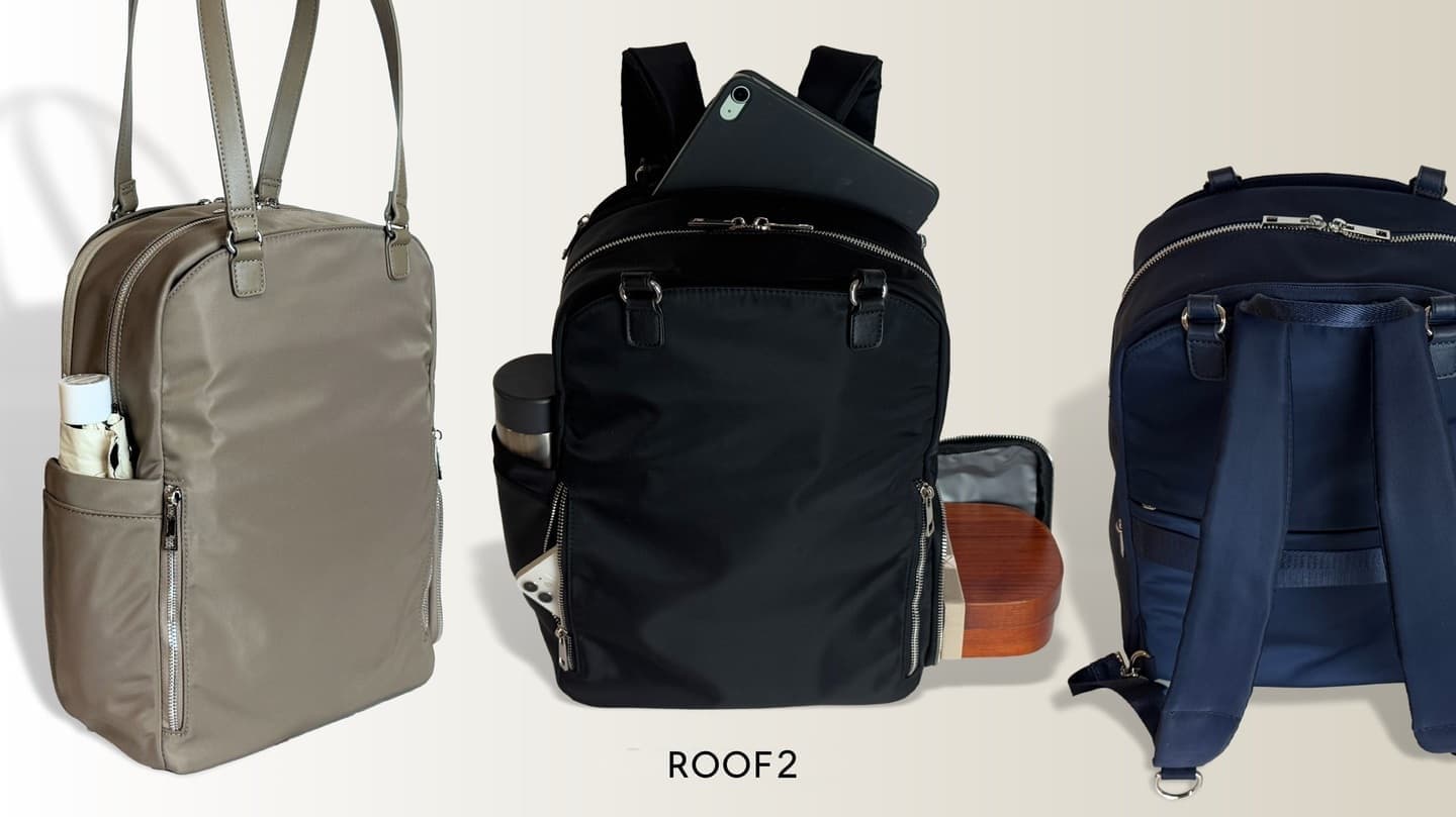ROOF2の一番の特徴は、シーンに応じてリュックとしてもトートとしてもしっかり機能する2WAYスタイルです。