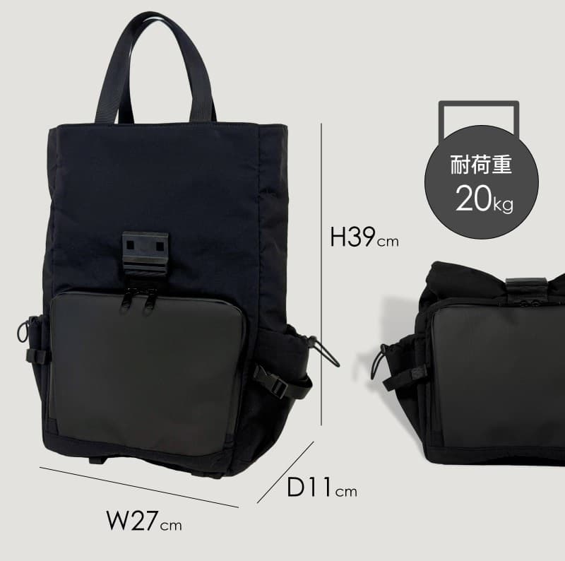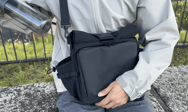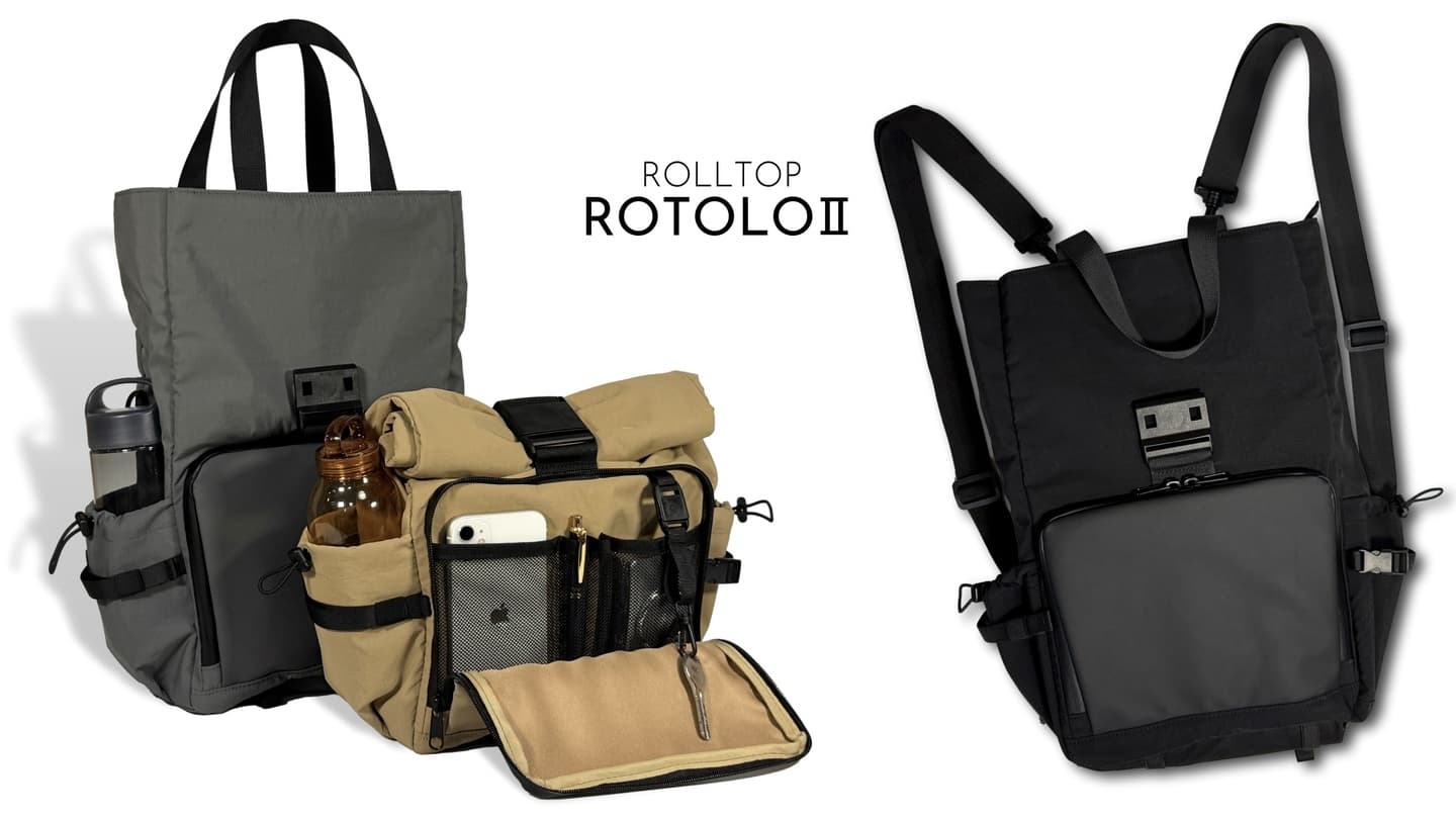 「ROTOLOⅡ」は、"クルクルッ"と丸めて小さくしたり、"パッ"と広げて大きくしたり、サイズアレンジができるロールトップスタイルで、取り外し可能なショルダーベルト位置を付け替えることで自由にスタイルを変えることが出来ます。