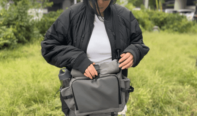ロールトップを固定するバックルベルトは、マグネット式バックルを採用しており、"カチッ"と簡単にワンタッチ開閉が可能です。