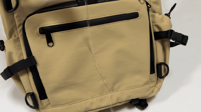 ROTOLOⅡが使用しているリップストップに、さらに撥水加工を施し、ご覧のように水を弾きます。