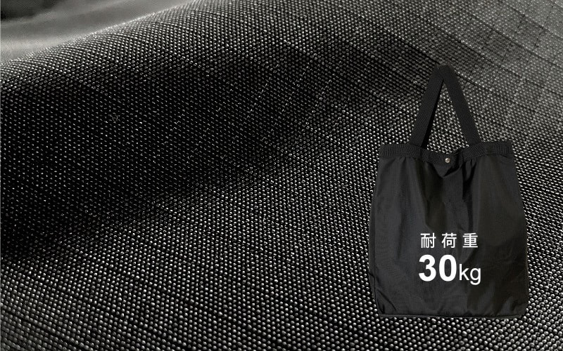 格子状に織り込むことで、ほつれたり、破れたり、劣化しにくいのが特徴で、万が一、破れても裂け目が広がりにくい構造となっており、摩擦にも強く、擦れても耐久性があるため、製品が長持ちすることにも繋がります。