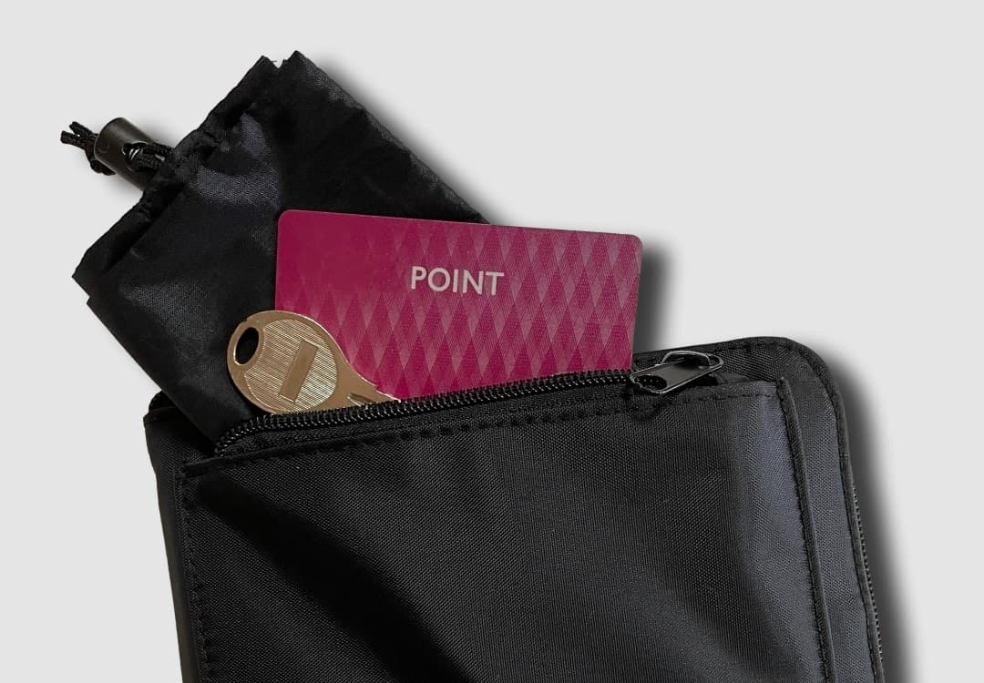 ネギ袋がセットされたポケットは、使用用途に応じてお店のポイントカードや小物入れとしても使用できます。
