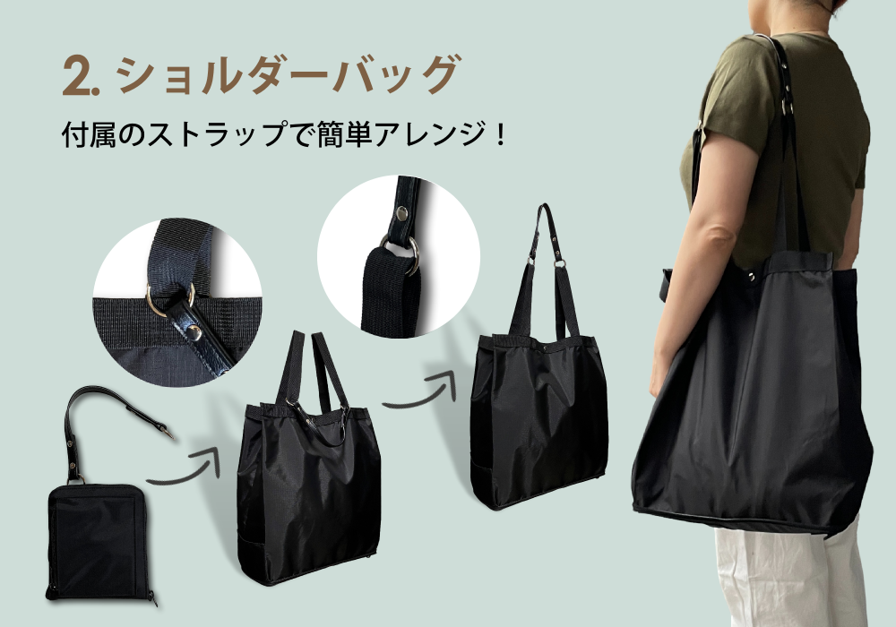 基本は、コンパクトに持ち運べるパッカブルタイプで、用途に合わせ「手提げ」「肩掛けショルダー」「リュック」として瞬時にアレンジが可能な3Wayモデルであることをベースに開発をスタートしました。