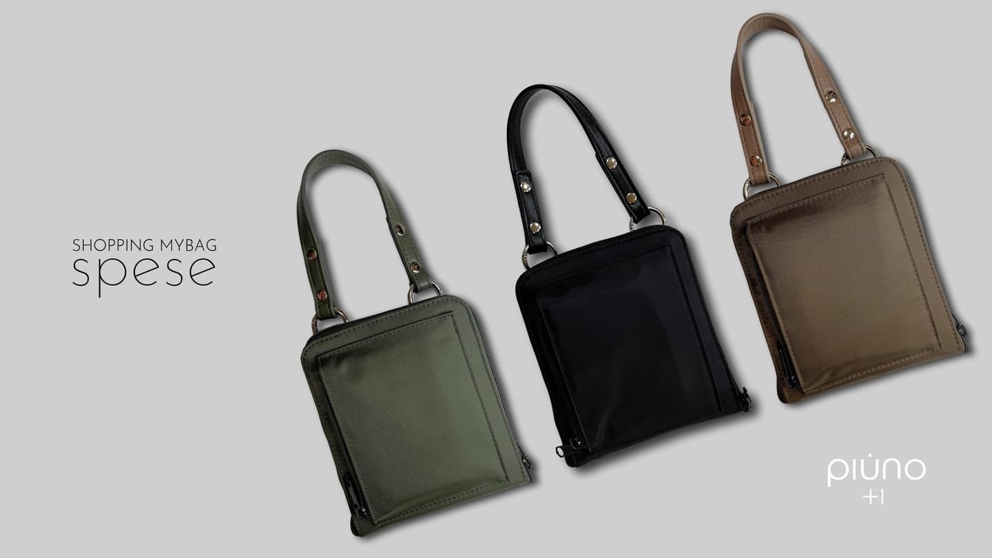 今回、piuno(ピューノ)では、私たちスタッフがマイバッグ・サブバッグを毎日使う中で、もっとあると嬉しい ”便利さ„ をギュと詰め込み、素材も機能もちょっと欲張りなマイバッグ「spese (スペーゼ)」製作しました。